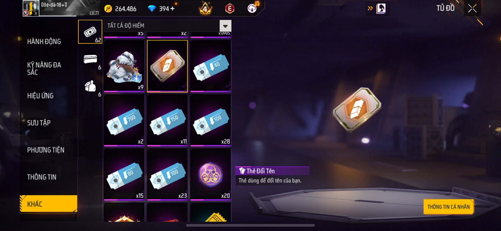 Acc chuyên nam skin nâng cấp
